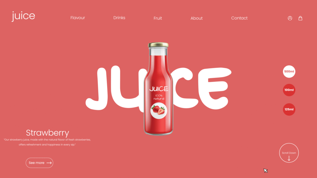 Juice Fruit Juice için hazırlanan web ve UI/UX tasarımı, markanın enerjisini ve doğallığını dijital ortama taşımayı amaçladı. Tıpkı meyve sularının ferahlığı gibi, arayüz tasarımı da sade, canlı ve kullanıcıya “tazelik” hissini yaşatacak şekilde kurgulandı.