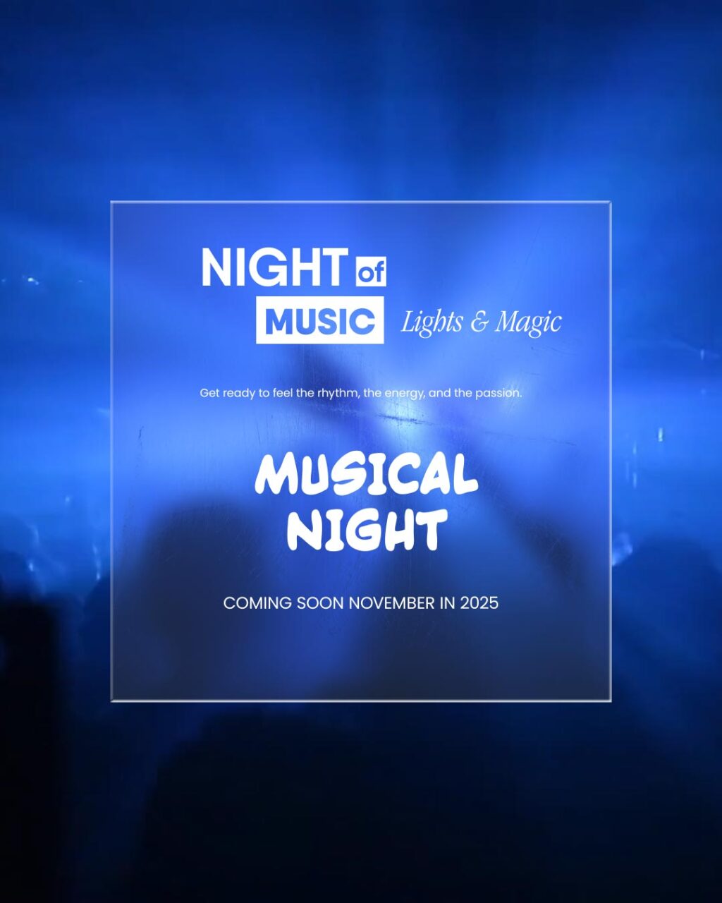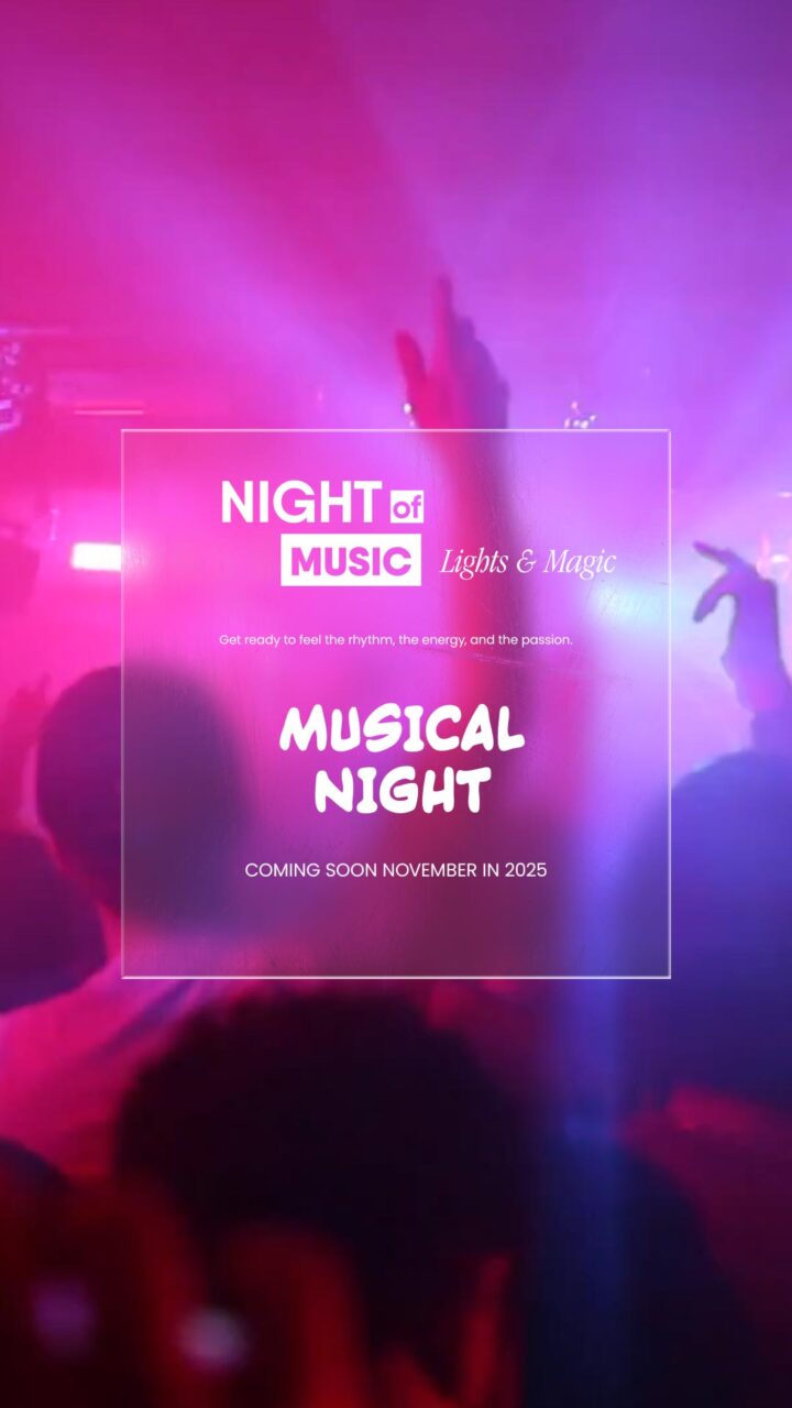 Her büyük konser, bir duyguyla başlar. “Night of Music” etkinliği için hazırladığımız sosyal medya flier tasarımı, o duyguyu ekranlara taşımayı amaçladı — sesin enerjisini, ışığın ritmiyle buluşturduk.